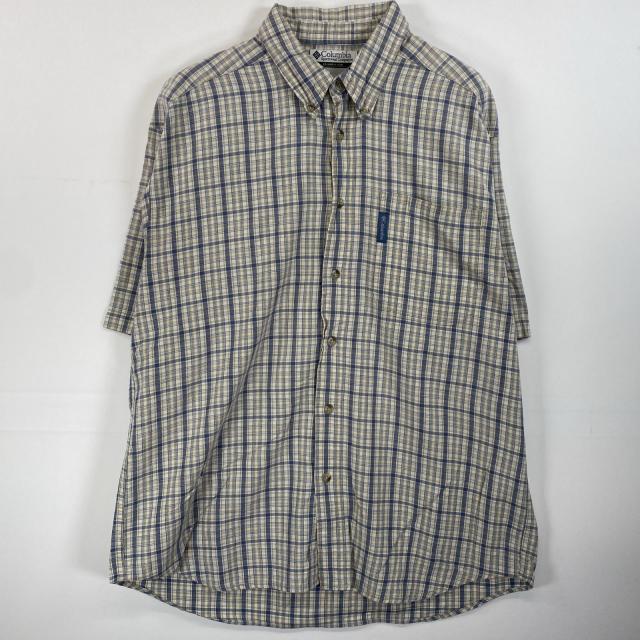 古着 コロンビア Columbia 半袖シャツ ボタンダウン ワンポイントロゴ L ベージュ系 チェック メンズ