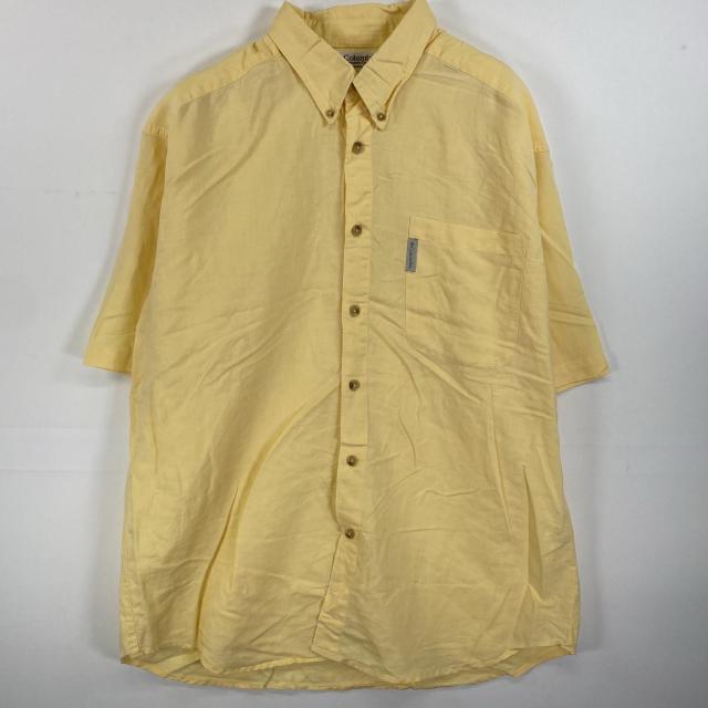 古着 コロンビア Columbia 半袖シャツ ボタンダウン 胸ポケット ワンポイントロゴ L イエロー 無地 メンズ