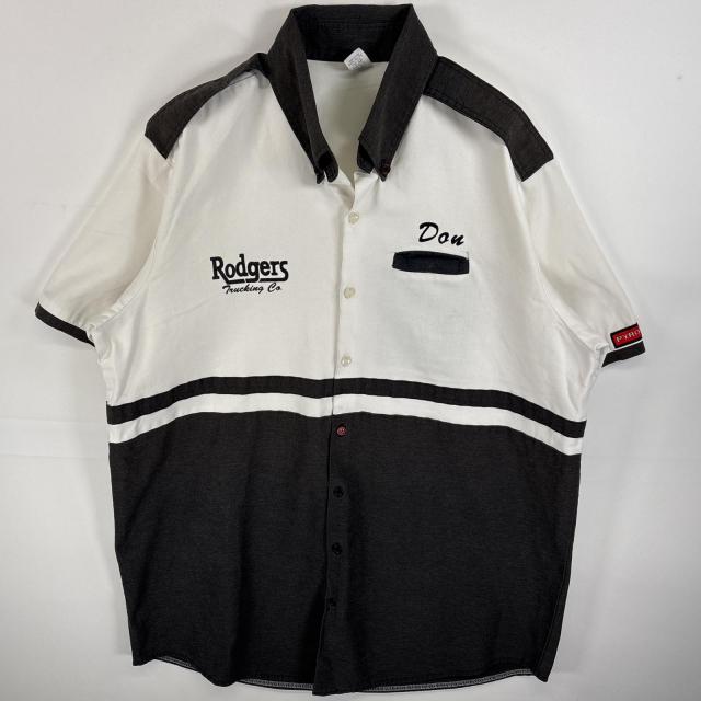 古着 半袖シャツ 染み込みプリント ワークシャツ USA製 XL ホワイト系 ツートン メンズ