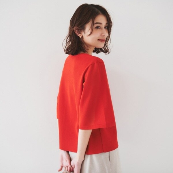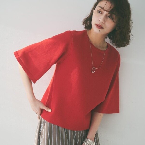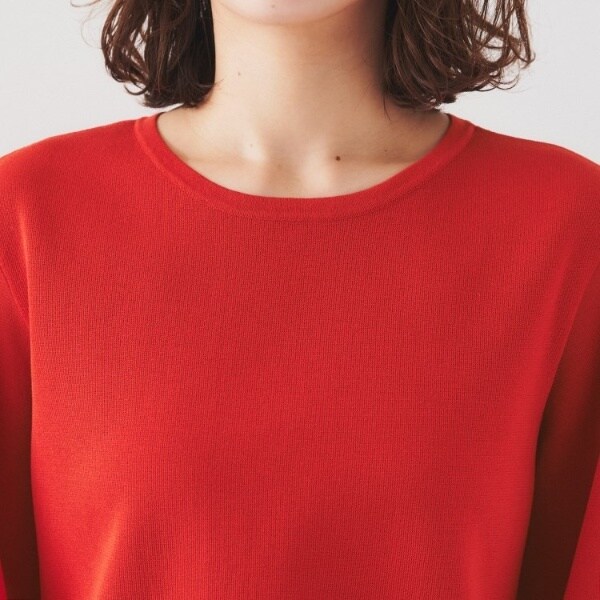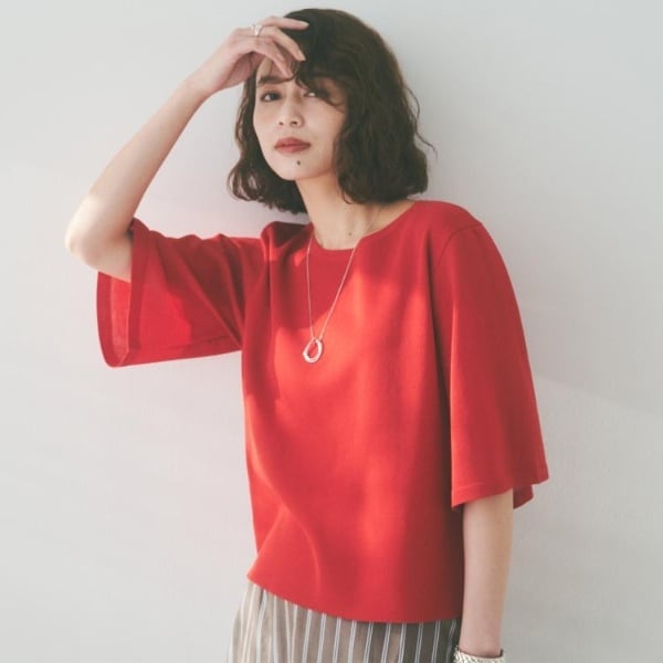 程よいシアーな袖は腕周りが綺麗に見え、ブラウス感覚で着用でき、一枚で着映えし夏まで活躍するおすすめの一枚着です。