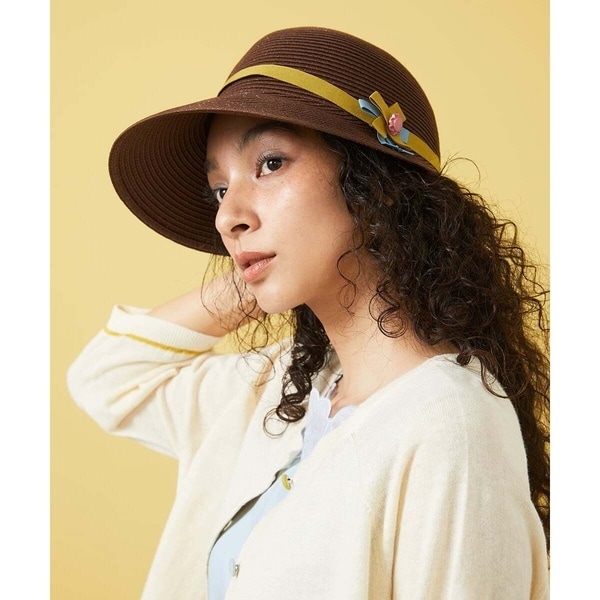 ホコモモラ(JOCOMOMOLA)/配色リボンアクセントストローキャップ