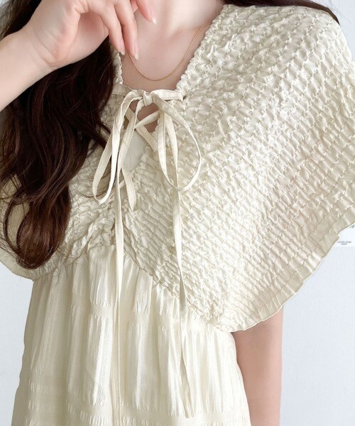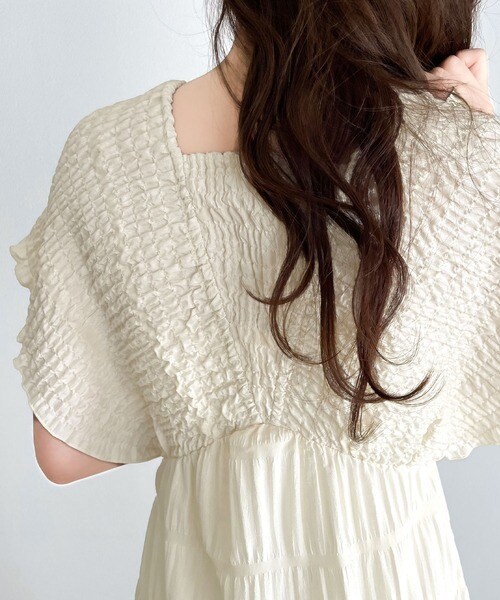 ケープのようなフレンチスリーブがフェミニンなアクセントに。