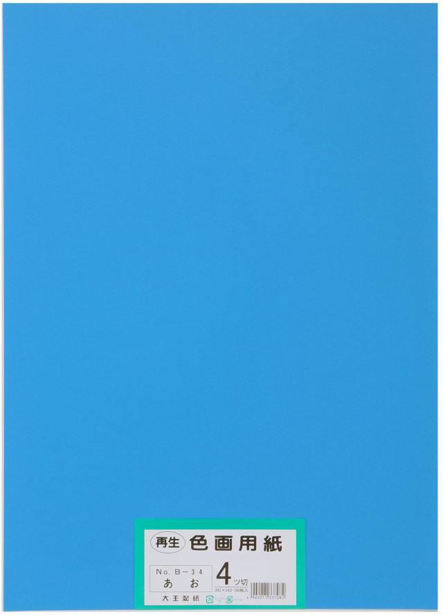 大王製紙 画用紙 再生色画用紙 四ツ切サイズ 100枚入 あお(青)
