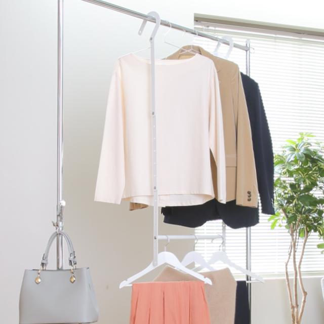 上下段に分けて掛けておけるので、セットアップでの収納やあらかじめコーディネートを考えて収納しておくことで着たい服がパッと見つけやすくなります。