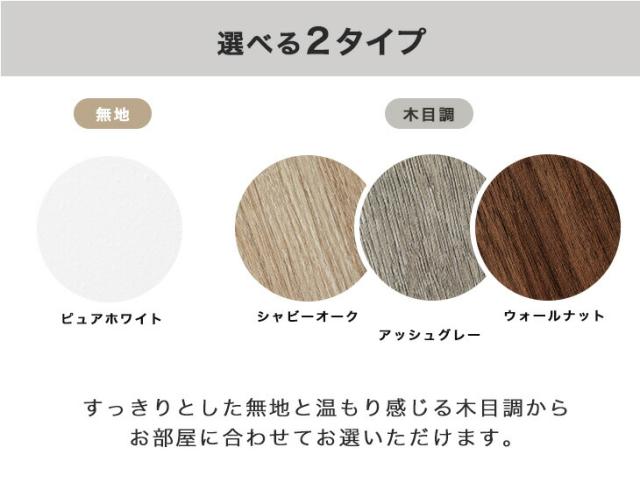 ピュアホワイト、ウォールナット、シャビーオーク、アッシュグレー