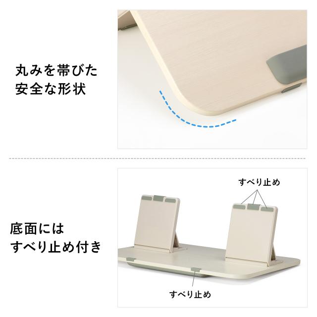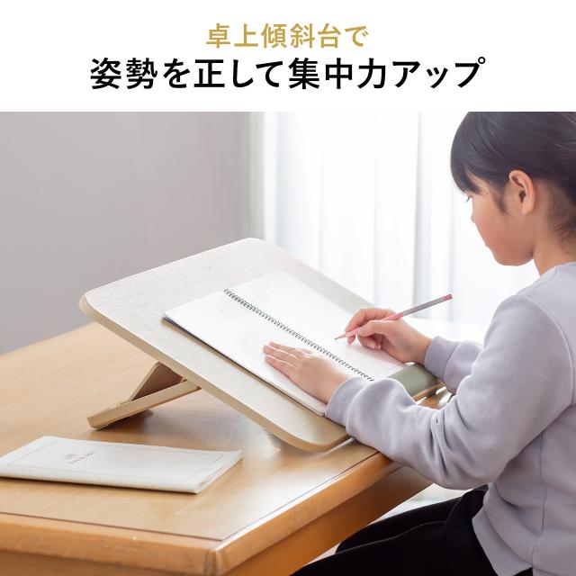 ●タブレットを使用したデジタル学習の際に、猫背になってしまうのを防ぎ程よい傾斜が作れる卓上の学習台です。●学習机やダイニングテーブル、リビングテーブルなどに置いて使うことで学習時の姿勢を改善し、体への負担の軽減と学習環境を整えます。