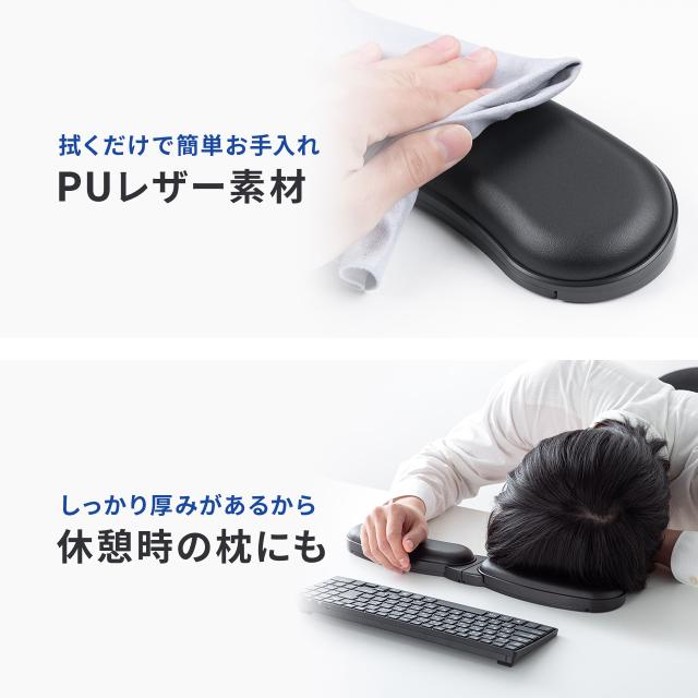 リストレスト キーボード マウス兼用 ロング ショート 可変式 疲労軽減 幅約44.5cmから最大68cm 柔らかクッション すべり止め付き PU素材 ブラック[200-TOK025BK]