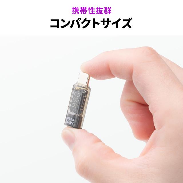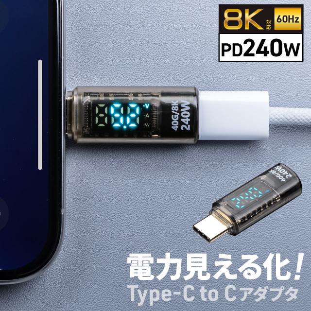 USB-C 変換アダプタ 電力表示機能 USB 40Gbps PD 240W 映像出力 8K 60Hz Type-C 出力スクリーン表示 クリアカラー スケルトンデザイン[500-USB094]