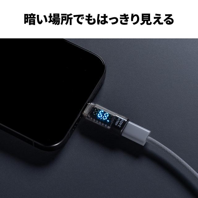 ※USB PD充電に非対応のUSB A to Cケーブルの先に装着しても電力表示ができます。