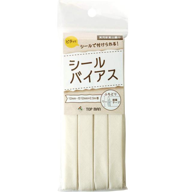 ◆商品名:マン工業 シールバイアステープ アイボリー 巾12mm×2.5m巻 TM008-1