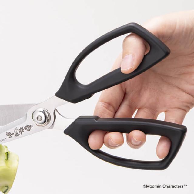 幅広い世代に人気の世界的キャラクター・ムーミンと貝印がコラボしたキッチンツールシリーズのキッチンばさみです。刃体にさりげなく描かれたリトルミイとお花のデザインが可愛いらしく、毎日の料理時間に癒しを与えてくれます。