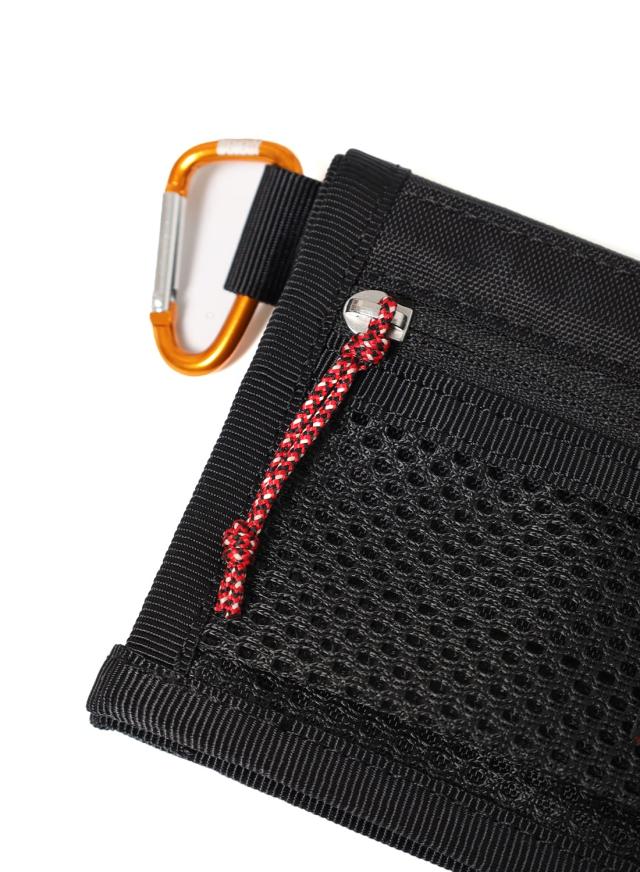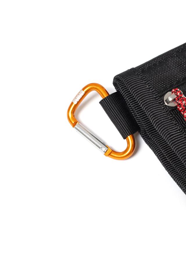 耐久性のあるポリエステル素材を使用することでタフな使用にも安心して持っていけますし、さらにSPEAKEASYオリジナルのカラビナがついているのでバッグやベルトループにつけて身軽に持ち運ぶこともできます。