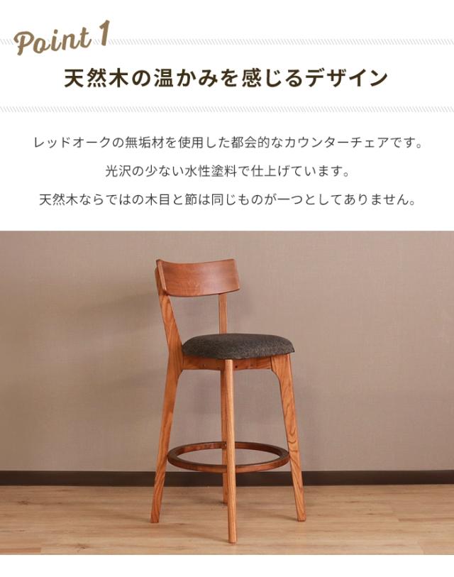 キーワード: カウンターチェア 椅子 ハイチェア カウンター椅子 木製 座面高66cm 単品 天然木 ナチュラル インテリア 足置き 背もたれ イス チェア ダイニングチェア デスクチェア キッチンチェア バーチェア レッドオーク 無垢材 クッション付き 一人掛け フットレスト付き キッチン ダイニング リビング