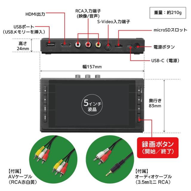思い出ビデオ変換レコーダー ビデオテープ デジタル化 VHS 8mm miniDV カセットテープ レコード 変換 MP4保存 MP3録音 USBメモリー対応 microSD対応 512GB対応 5インチ液晶 バッテリー内蔵 HDMI出力 RCA入力 パソコン不要 操作簡単 家族向け 映像保存 思い出整理 プレゼント