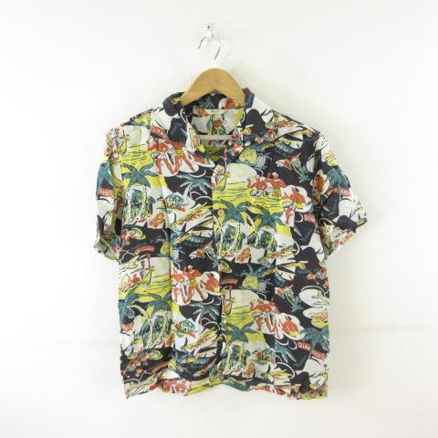 【中古】Kent IN TRADITION アロハシャツ 半袖 総柄 白 黒 L *T384 メンズ