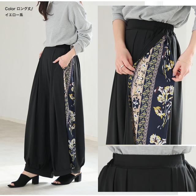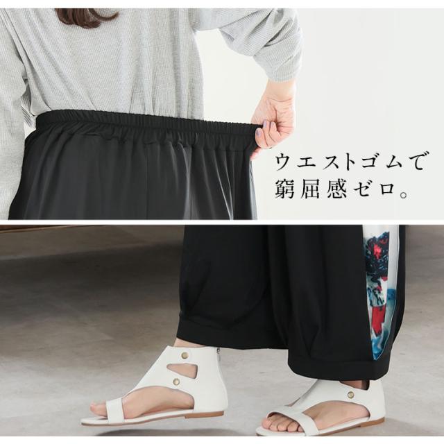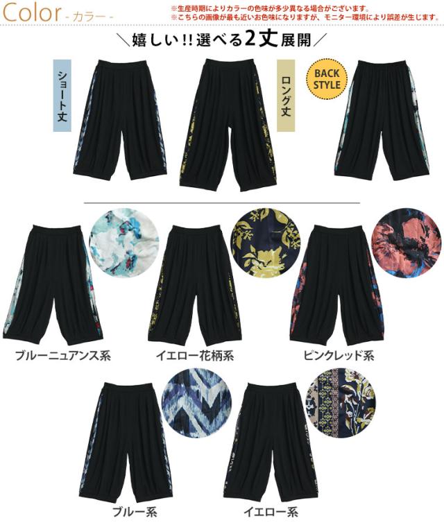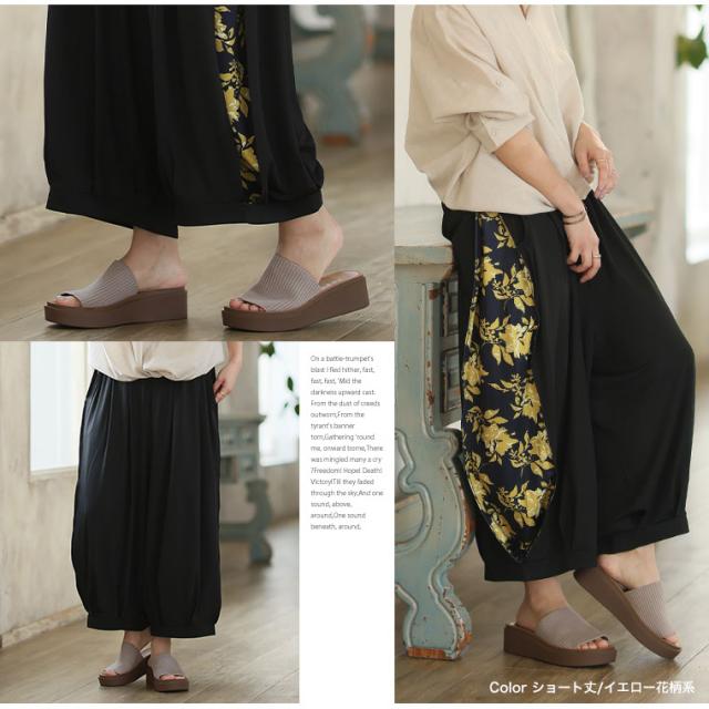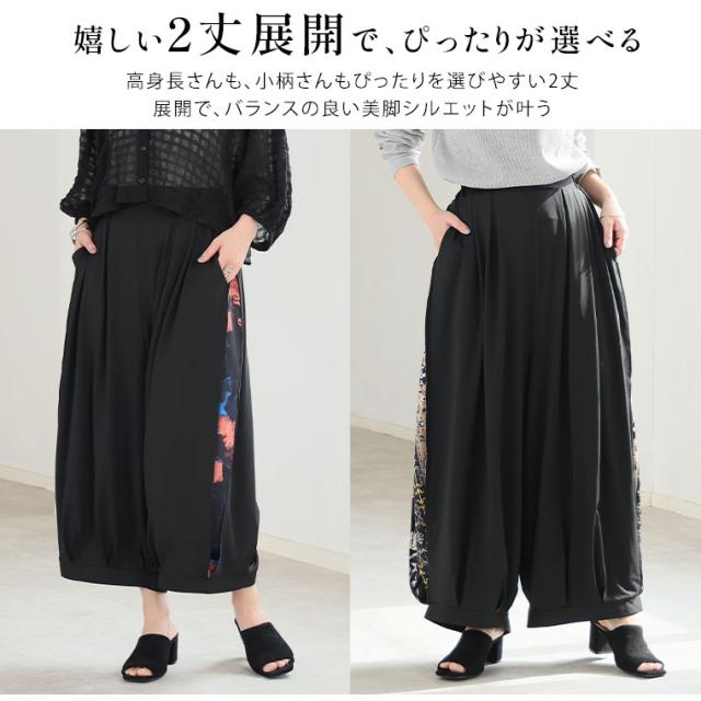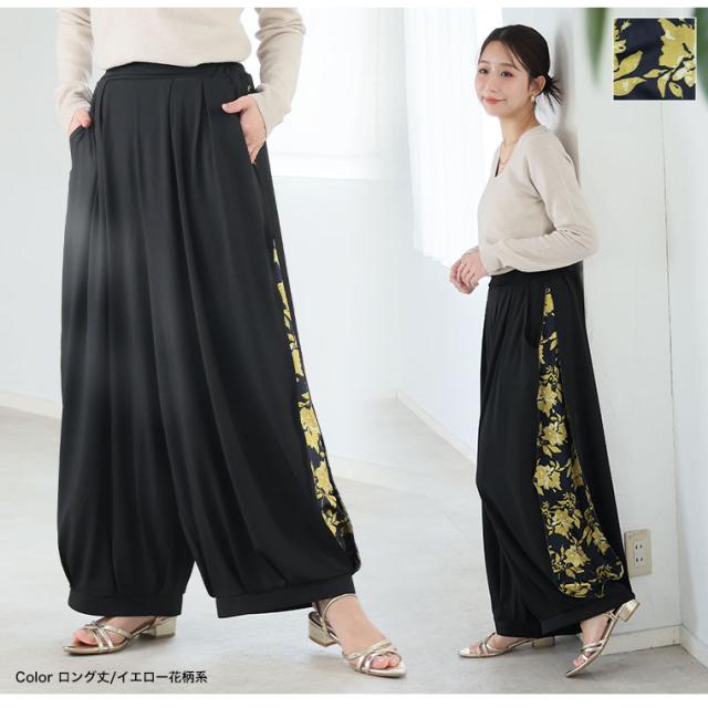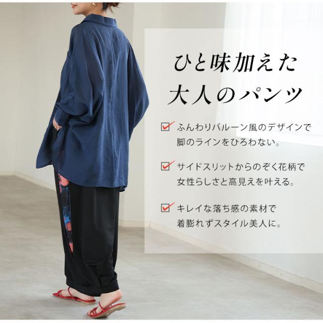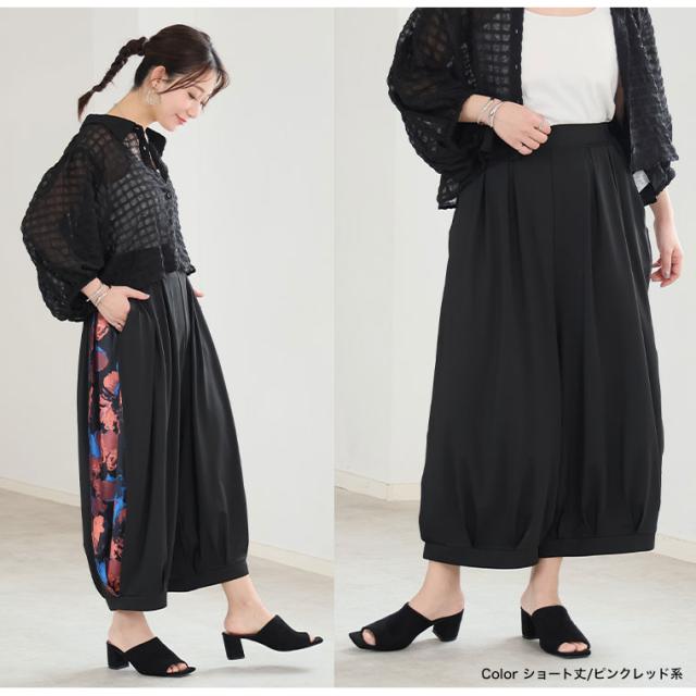新作 大きいサイズ レディース パンツ | 2丈から選べる サイドスリット 上品柄 ランタンパンツ [484032] LL 3L 4L 5L 6L