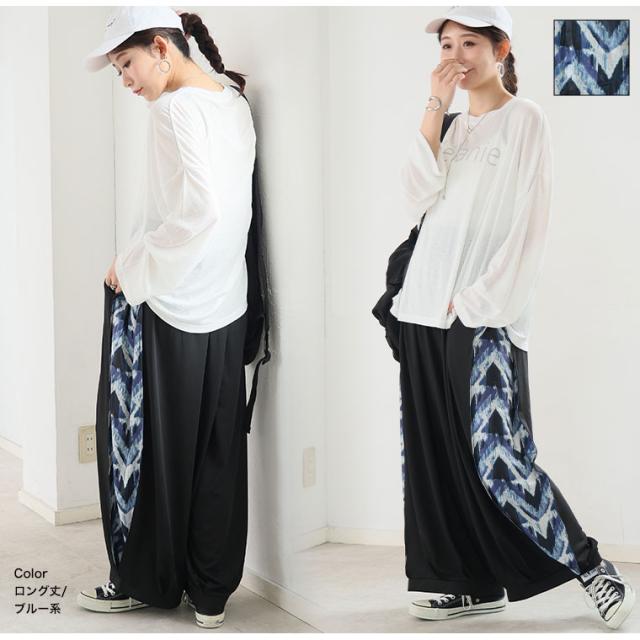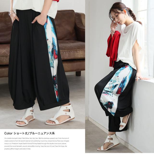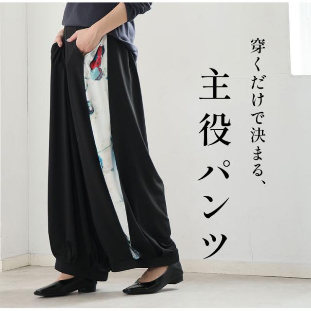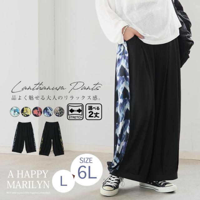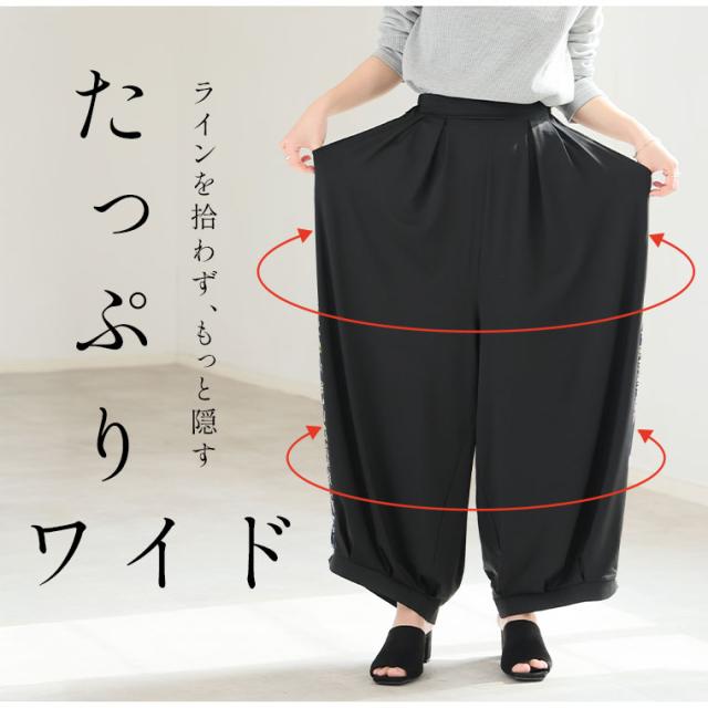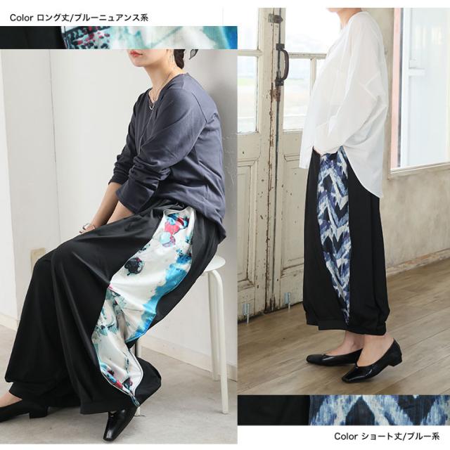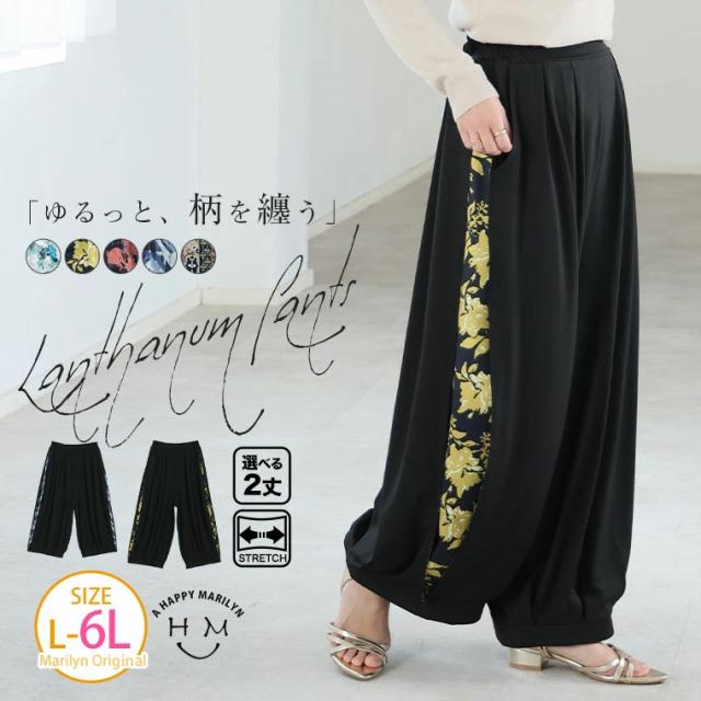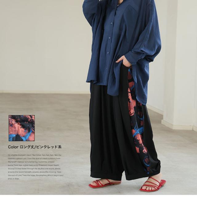 新作 大きいサイズ レディース パンツ | 2丈から選べる サイドスリット 上品柄 ランタンパンツ [484032] LL 3L 4L 5L 6L