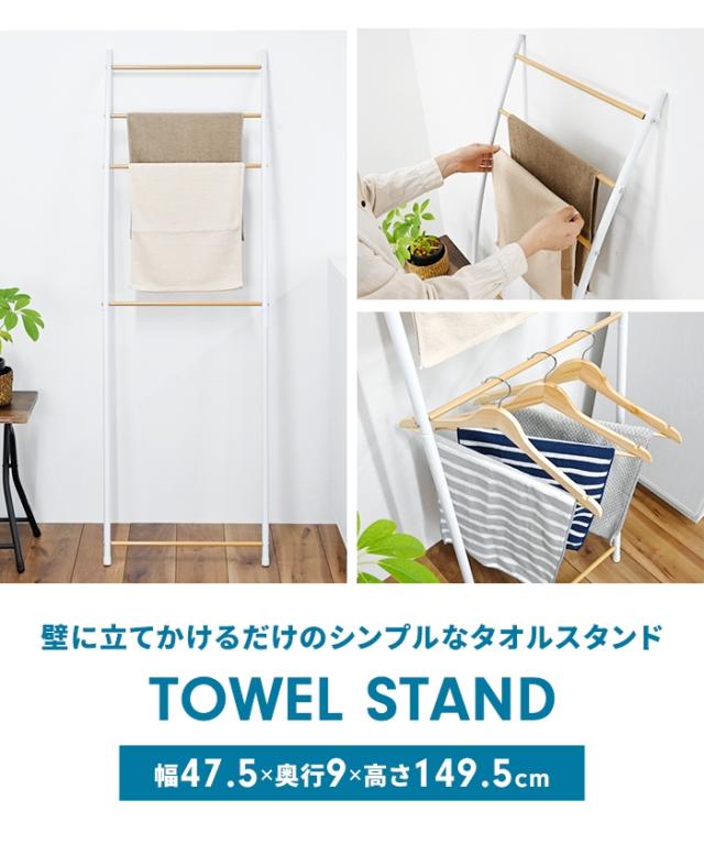 【値下げ】タオルスタンド タオル掛け 立て掛けタイプ 省スペース タオル干し 幅47.5 高さ149.5 立てかけ タオルハンガー 洗面所 物干し 室内 部屋干し コンパクト 室内物干し 軽量設計 持ち運びラクラク 便利 北欧 おしゃれ 新生活 一人暮らし