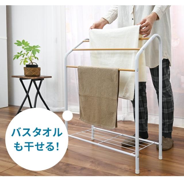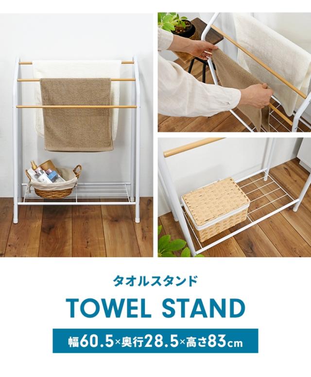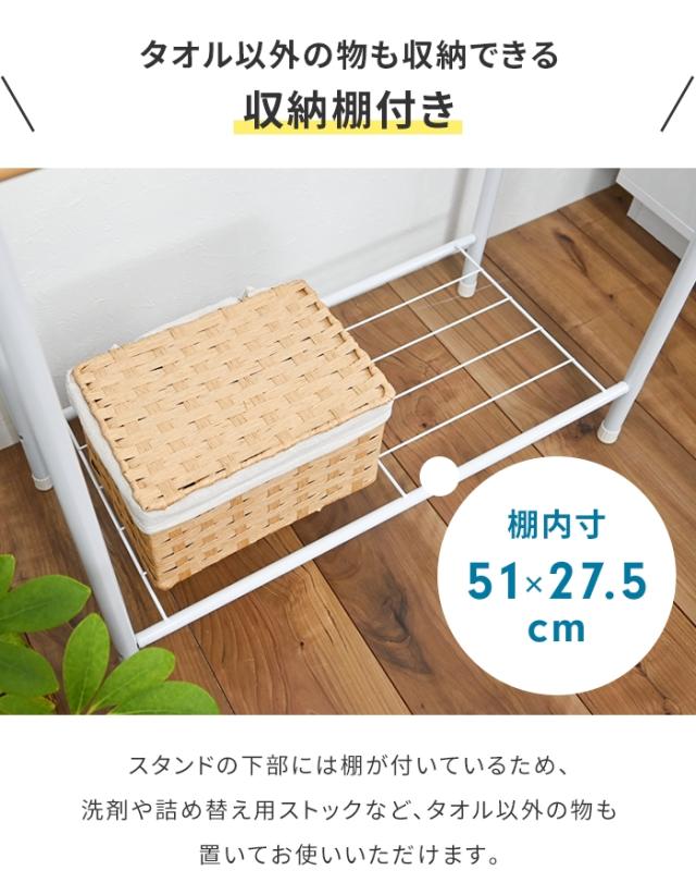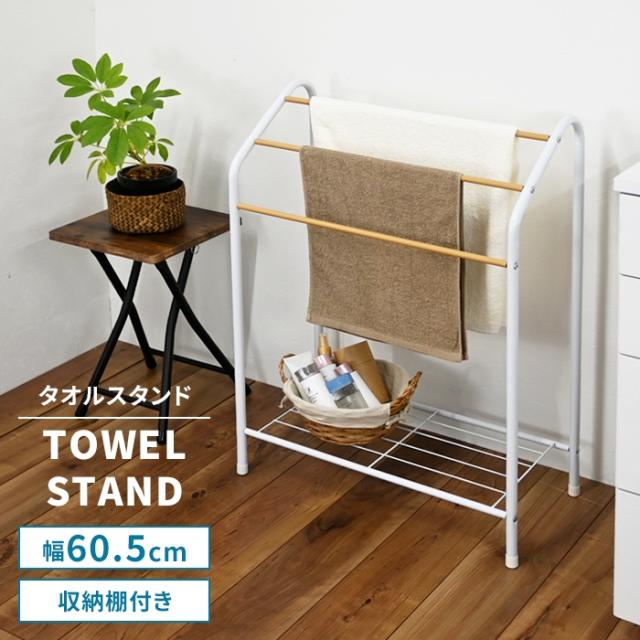 タオルスタンド タオル掛け 棚付きタイプ 省スペース タオル干し 幅60.5 高さ83 収納棚付き タオルハンガー 洗面所 物干し 室内 部屋干し コンパクト 室内物干し 軽量設計 持ち運びラクラク 便利 北欧 おしゃれ 新生活 一人暮らし