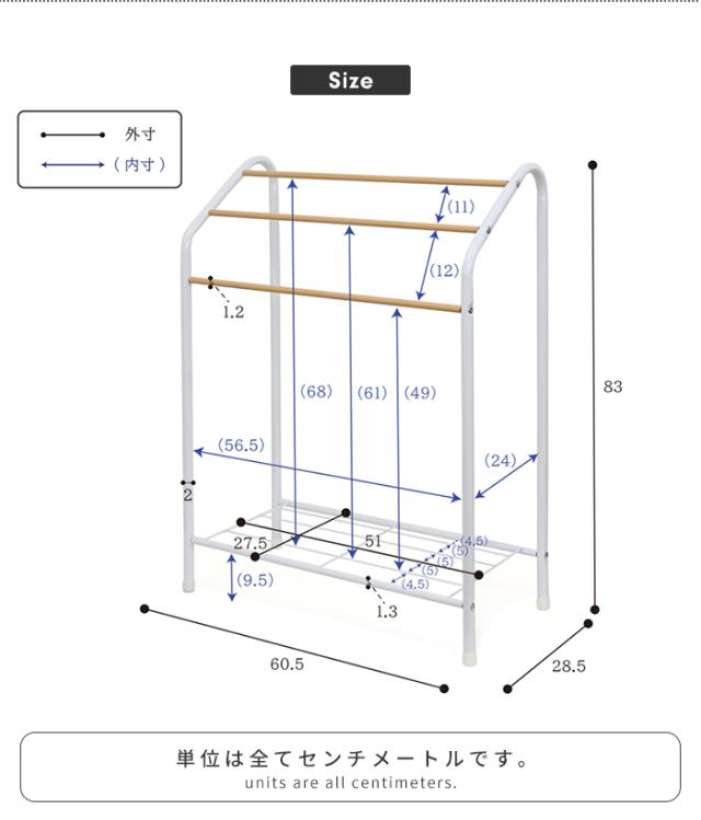 | タオルラック タオルハンガー 物干し 室内干し 部屋干し 屋内 洗面所 シンプル 軽量 スタイリッシュ タオルスタンド タオル掛け 省スペース 幅60.5 高さ83 棚付き 軽量設計 優れた通気性 持ち運びラクラク 便利 スチール製 タオル干し バスタオル掛け スチールラック 隙間収納 コンパクト シンプル タオル バスタオル リビング ランドリー 脱衣所 洗面所 ワンルーム |