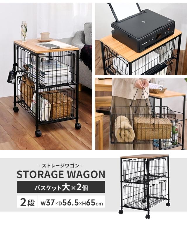 収納ワゴン 押入れ収納 ラック キャスター付き バスケット×2個 幅37 奥行65.5 高さ65 スリム 収納ラック押し入れ 収納 かご付き バスケット スチールラック 隙間収納 サイドテーブル ソファ脇 サイドワゴン 北欧 おしゃれ 新生活 一人暮らし