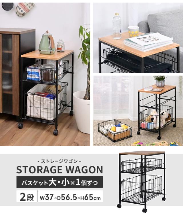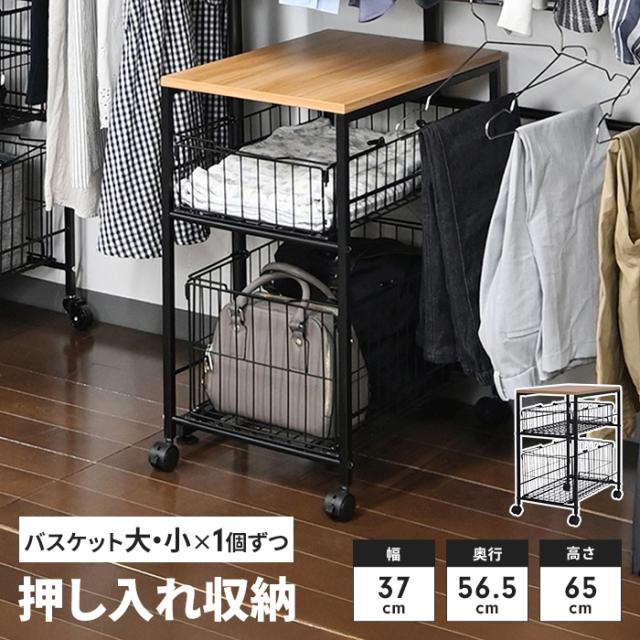 収納ワゴン 押入れ収納 ラック キャスター付き バスケット 大・小 1個ずつ 幅37 奥行65.5 高さ65 スリム 収納ラック押し入れ 収納 かご付き バスケット スチールラック 隙間収納 サイドテーブル ソファ脇 サイドワゴン 北欧 おしゃれ 新生活 一人暮らし