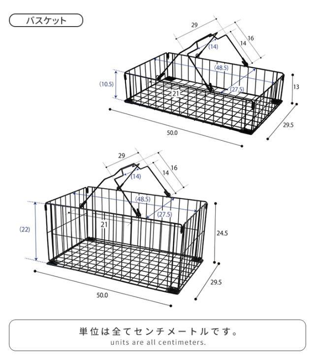 ・ 小物収納に便利な浅型のバスケットとたっぷり収納できる深型のバスケットが付いています。