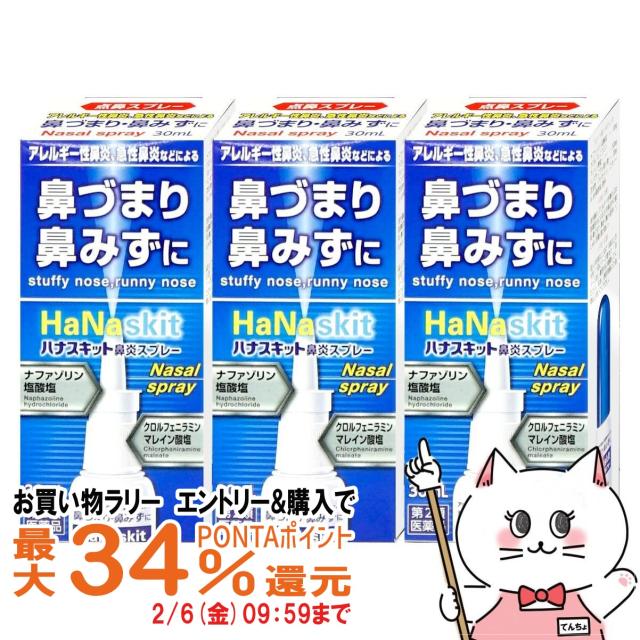 【お買い物ラリー 最大34%還元】【第2類医薬品】[セット]ハナスキット鼻炎スプレー 30ml×3個(セルフメディケーション税制対象)[タカミツ][鼻炎・アレルギー][送料無料](6059703-set1)
