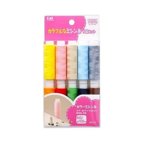 【単品2個セット】 KM3173 カラー糸 アソート 100m×10本 貝印(代引不可)【メール便配送】【送料無料】