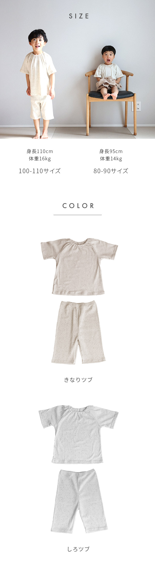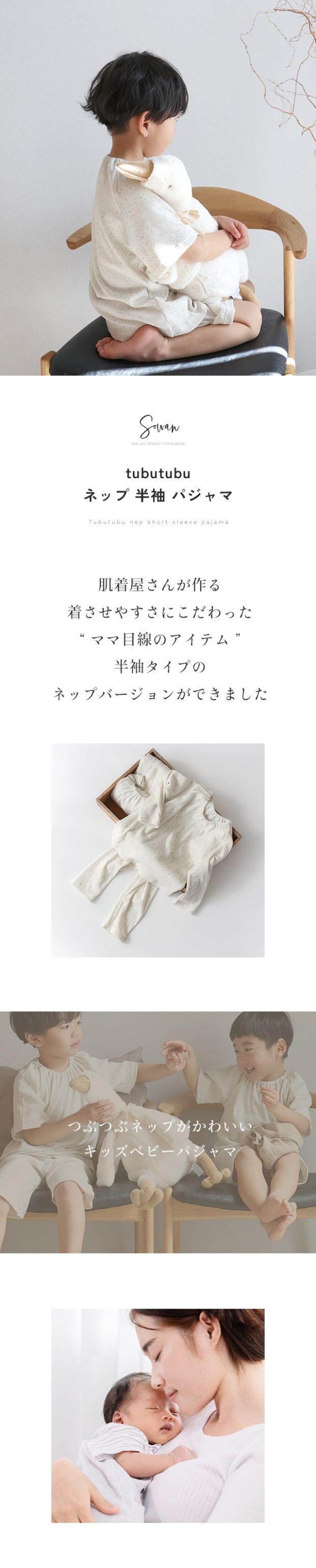 【日本製】tubutubu ネップ ベビー キッズ パジャマ 半袖 薄手 春夏 80 90 100 110 120 130 綿 男の子 女の子 おしゃれ かわいい 可愛い 部屋着 子供 子ども こども コットン 保育園 1歳 2歳 3歳 4歳