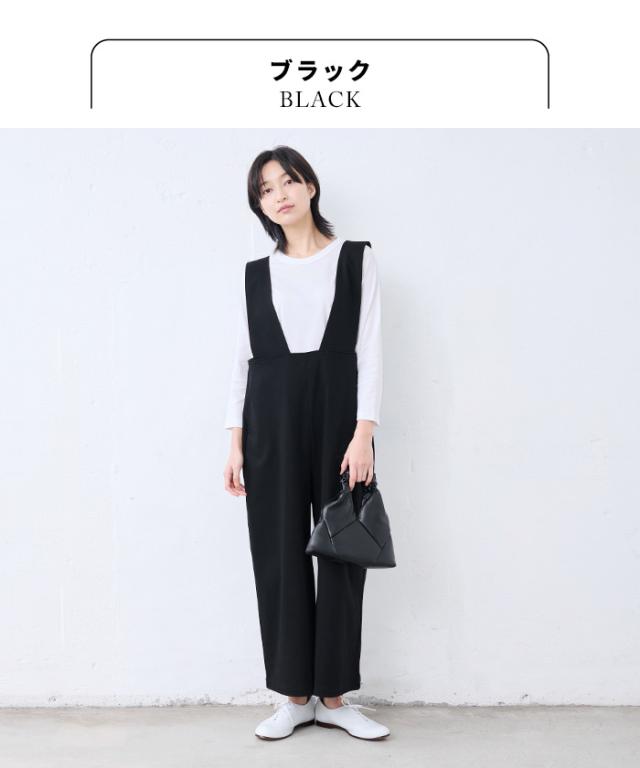 サロペットレディース パンツ 大人 綿 50代 40代 コットン100% オーバーオール 日本製 30代 女性 ファッション 体型カバー ワイド シンプル ポケット ワイドパンツ 楽ちん 大人カジュアル オールインワン きれいめ フォーマル セレモニー 50 代でも着れる サロペット パンツ 大人 綿 50代 40代 ブラック 黒 ネイビー 紺