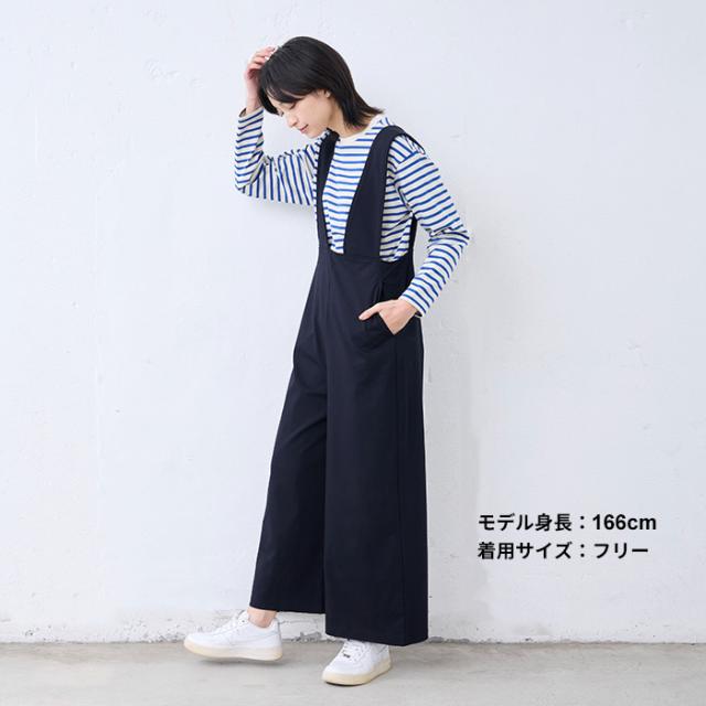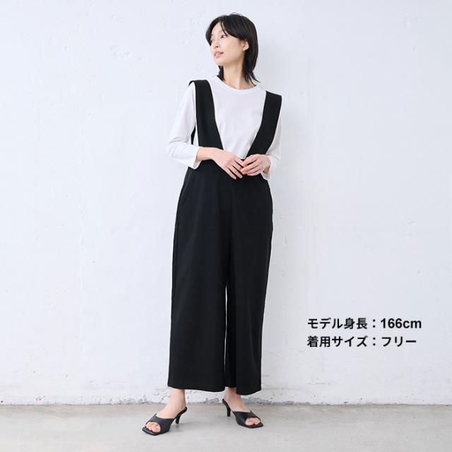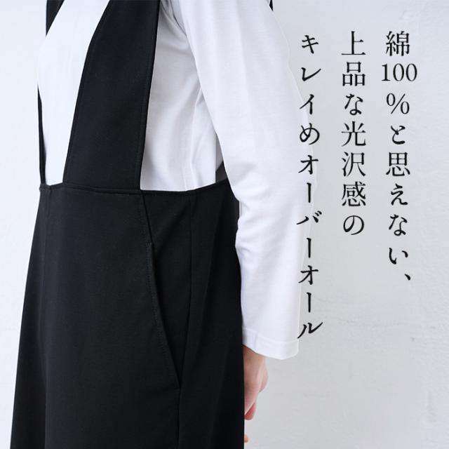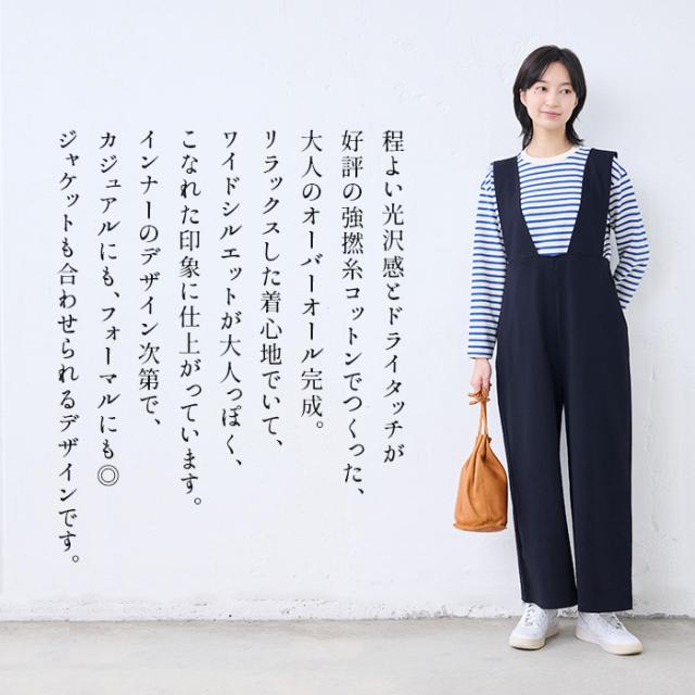 強撚糸コットン100% オーバーオール 日本製 / 接触冷感 サロペットレディース パンツ 大人 綿 50代 40代 30代 女性 ファッション 体型カバー ワイド シンプル ポケット ワイドパンツ 楽ちん 大人カジュアル オールインワン きれいめ フォーマル セレモニー