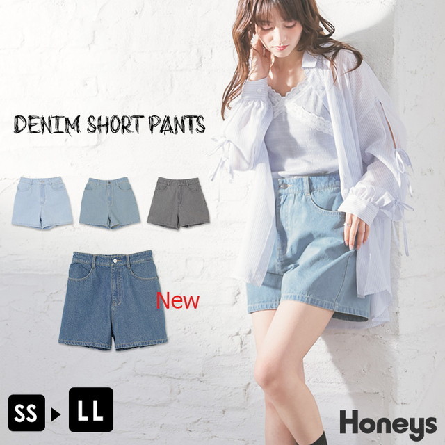 ボトムス パンツ ショートパンツ デニムパンツ レスウォーター デニム 綿100% 後ろウエストゴム レディース Honeys ハニーズ デニムショートパンツ