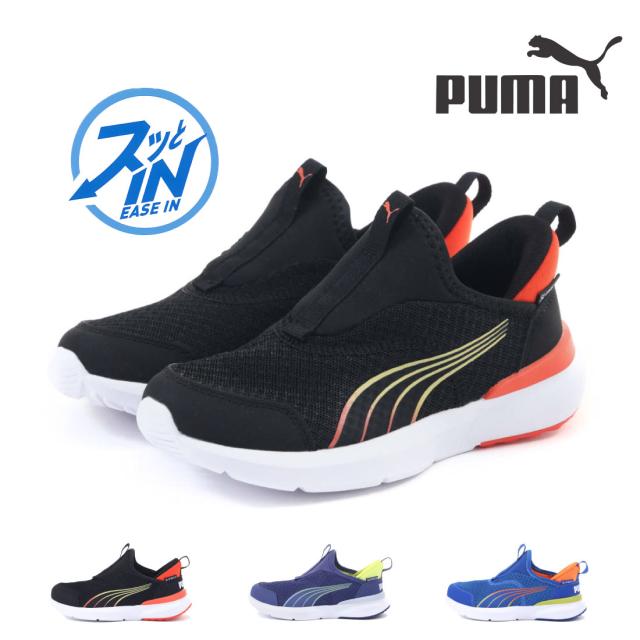 | 特長 | キッズスニーカーの中でもプーマらしいパフォーマンスニーズに特化してデザインを投入した一足。 4歳から8歳のお子様におすすめのサイズ。プーマの新しいSLIPTECHテクノロジーにより、手を使わずにシューズを脱ぎ履きでき、ユニークなステップインスタイルを演出します。アッパーはスリップオン仕様で、耐久性と足運びをサポートするトラクションが特徴。ミッドソールには、ProFoamと耐久性のあるラバーポッドがどんな路面でもトラクションを発揮します。伸縮性のあるネオプレンとウェビングが元気に動き回るお子様の足にぴったりフィットします。 |