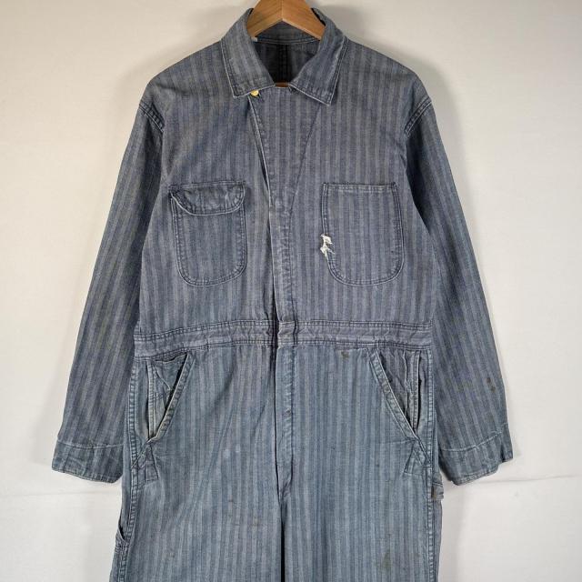 古着 70s/70年代 ヴィンテージ サンフォライズド 長袖つなぎ オールインワン ワーク 作業着 大きいサイズ 42R 33 ブルー系 メンズ