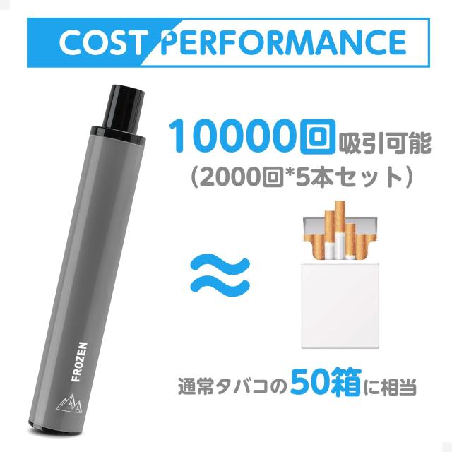 ・梱包内容:使い捨て電子タバコ x5本、日本語取扱説明書