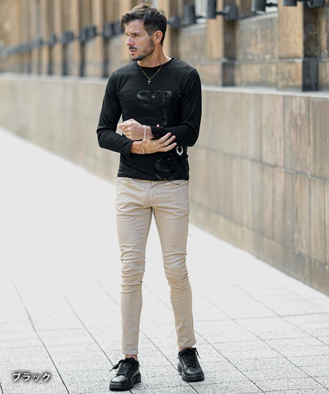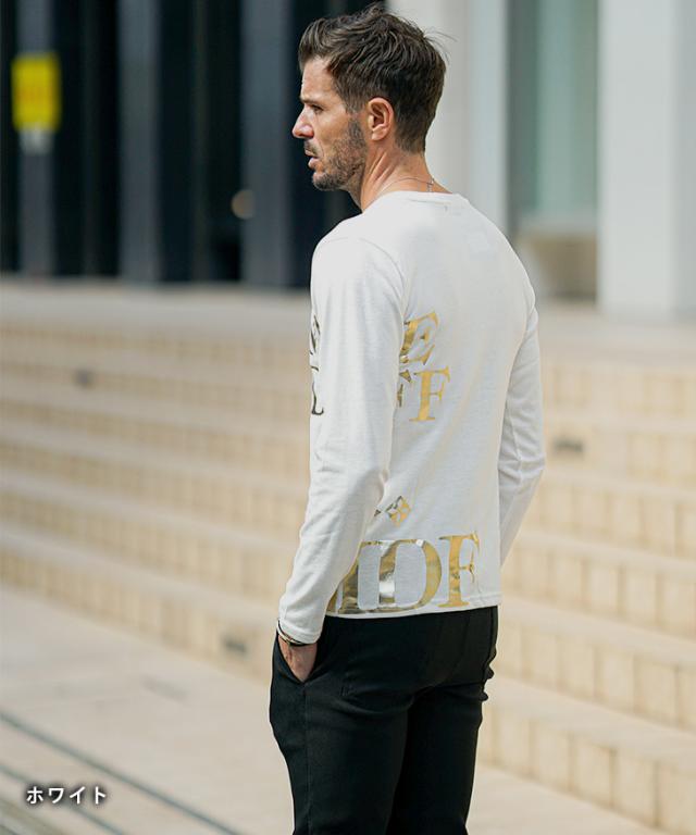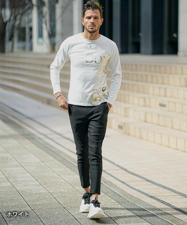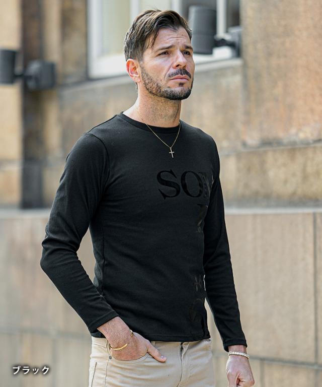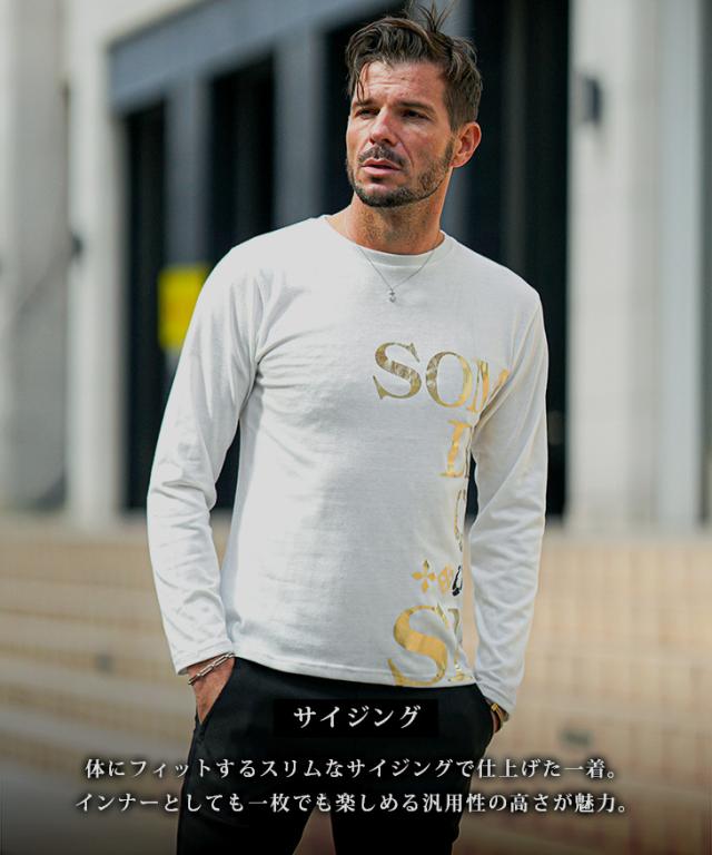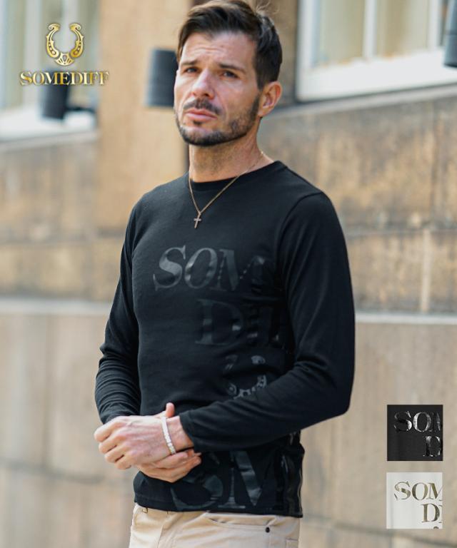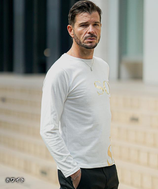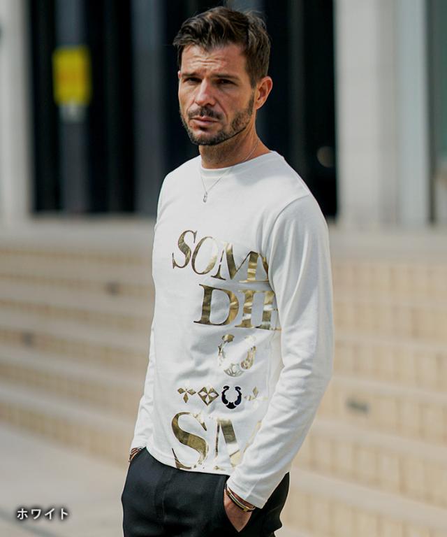 長袖 Tシャツ メンズ ブランド ロンT メンズ 長袖Tシャツ クルーネック Tシャツ メンズ 箔プリント ロゴT カットソー 細身 タイト スリム 白 黒 白Tシャツ LL XL 大人 春 春服 春物 春秋 メンズファッション ちょいワル ジョーカー SOMEDIFF サムディフ joker
