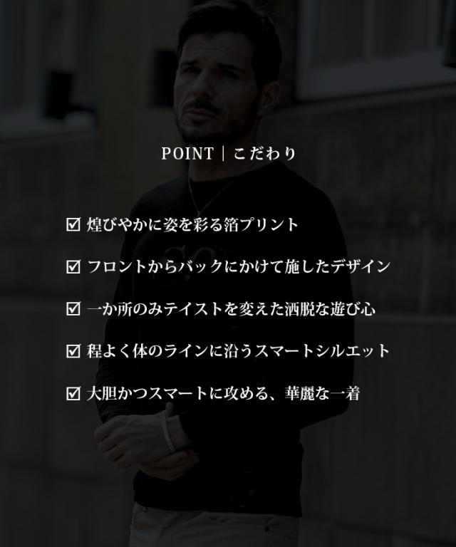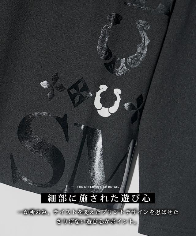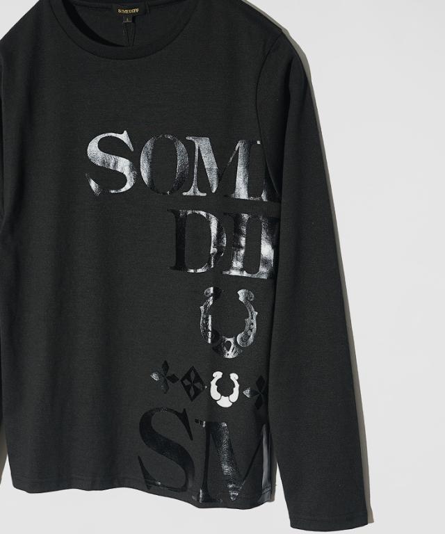 SOMEDIFF(サムディフ)『箔プリントロンT』【箔プリントロンT】■Design/デザイン着るだけで“こなれ感”が溢れ出すSOMEDIFFの長袖Tシャツ。フロントの左側からバックにかけて、高級感溢れる箔プリントでSOMEDIFFの文字をデザイン。薄すぎず厚すぎない生地感が快適な着心地を実現する。遊び心がもたらす、洒落感と高揚感を纏え。■Material/素材感綿とポリエステルを使用し、しなやかで、なめらかな生地感が特徴。やや伸縮するため、フィット感がありつつも快適な着用を実現した一枚。
