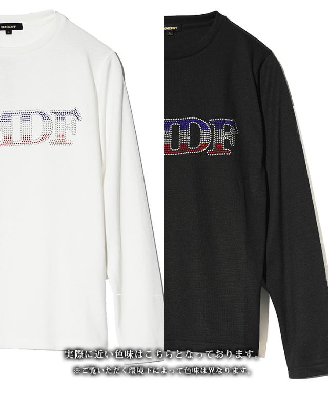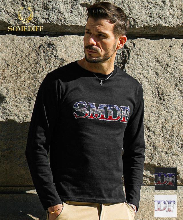 SOMEDIFF(サムディフ)『フロントラインストーンロンT』【フロントラインストーンロンT】■Design/デザイン着るだけで“こなれ感”が溢れ出すSOMEDIFFの長袖Tシャツ。フロントに3色のラインストーンでデザインした、SOMEDIFFのロゴを配置。薄すぎず厚すぎない生地感が快適な着心地を実現する。遊び心がもたらす、洒落感と高揚感を纏え。■Material/素材感綿とポリエステルを使用し、しなやかで、なめらかな生地感が特徴。やや伸縮するため、フィット感がありつつも快適な着用を実現した一枚。
