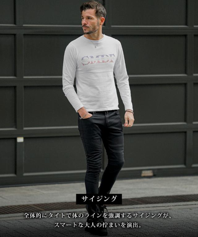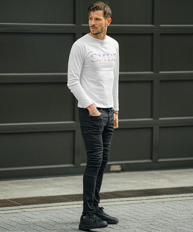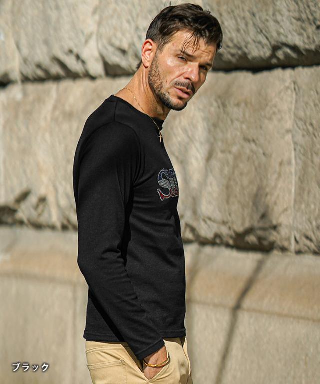 長袖 Tシャツ メンズ ブランド ロンT メンズ 長袖Tシャツ クルーネック Tシャツ メンズ ラインストーン ロゴT カットソー 細身 タイト スリム 白 黒 白Tシャツ LL XL 大人 春 春服 春物 春秋 メンズファッション ちょいワル ジョーカー SOMEDIFF サムディフ joker
