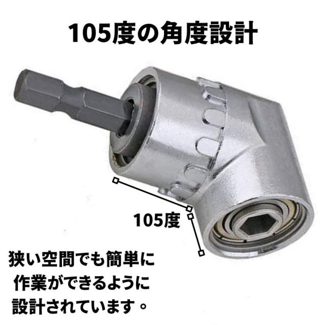 105度の曲がり角設計により、ドリルやドライバーが届かない奥まった場所でも楽々作業ができます。例えば、家具の組み立てや車の整備、電気配線工事など、通常のツールでは作業しにくい環境で大活躍!作業の手間を大幅に軽減してくれる便利なツールです。