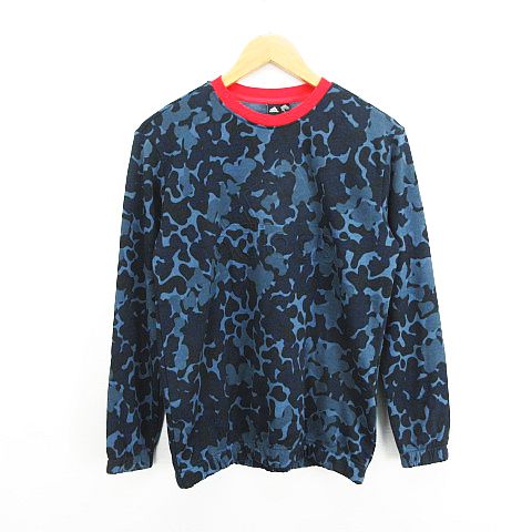 【中古】アディダス トレーナー スウェット 長袖 クルーネック 迷彩柄 カモフラ ロゴ 160 ネイビー ※EKM キッズ