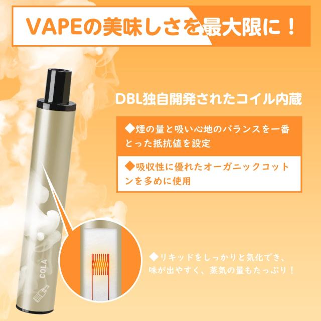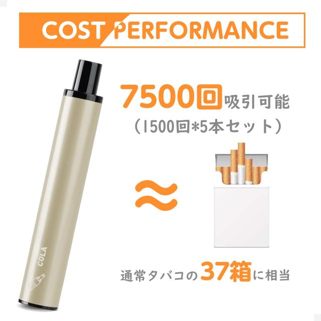 電子タバコ 使い捨て VAPE コーラ風味 7500回吸引可能 ベイプ 爆煙 水蒸気タバコ シーシャ ニコチンなし タバコカプセル装着可 オートスイッチ DBL STICK PLUS 5本入り