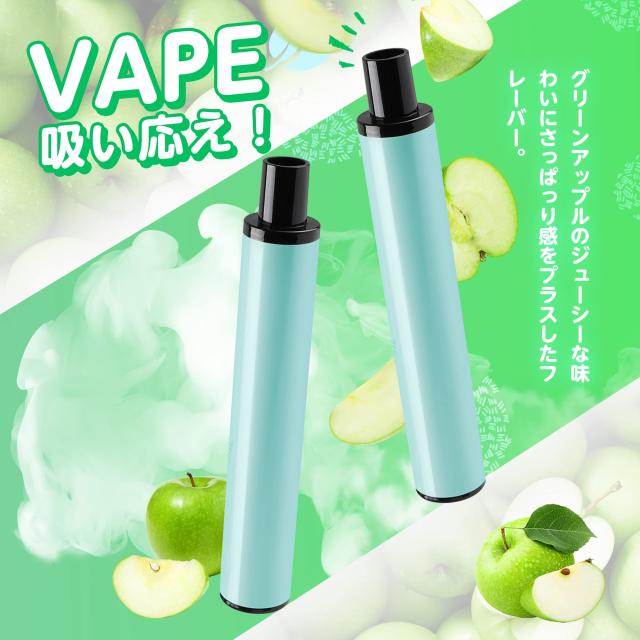 ■ 人気のグリーンアップルフレーバー:グリーンアップルのジューシーな味わいにさっぱっり感をプラスしたフレーバー。