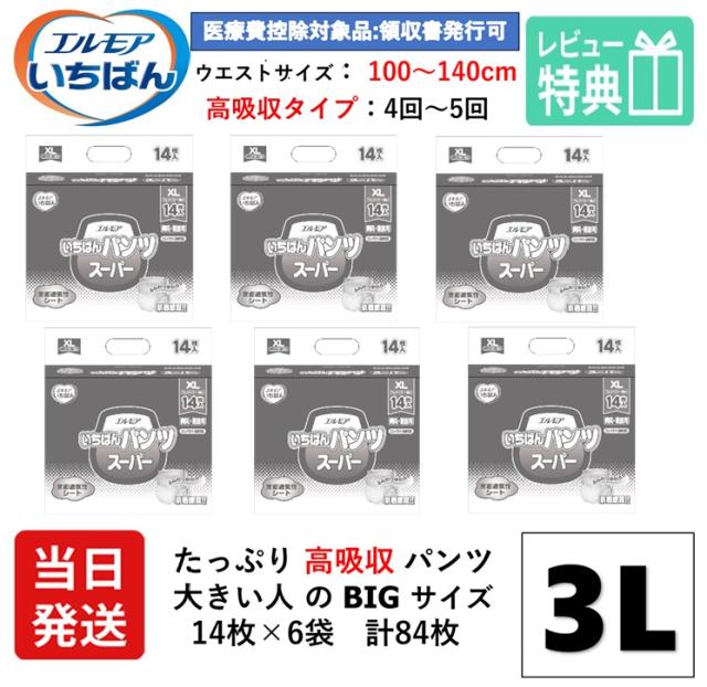 【当日発送】 エルモア 大人用紙おむつ 高吸収 6回分 はくパンツ 3L いちばんパンツ スーパー XL 3Lサイズ 14枚×6袋 BIG パンツ 大人用 紙 おむつ 紙おむつ 大人用 オムツ 紙パンツ 大人用オムツ 大人用 紙おむつ 紙パンツ おむつ 大人 介護用パンツ リフレ 大きい人の