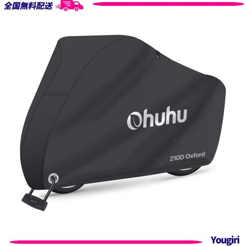 Ohuhu 自転車カバー 厚手 防水 210Dオックス製 防水テープ付 防犯 防風 UVカット 雨雪対応 サイクルカバー 盗難防止 鍵穴/収納袋付き 黒