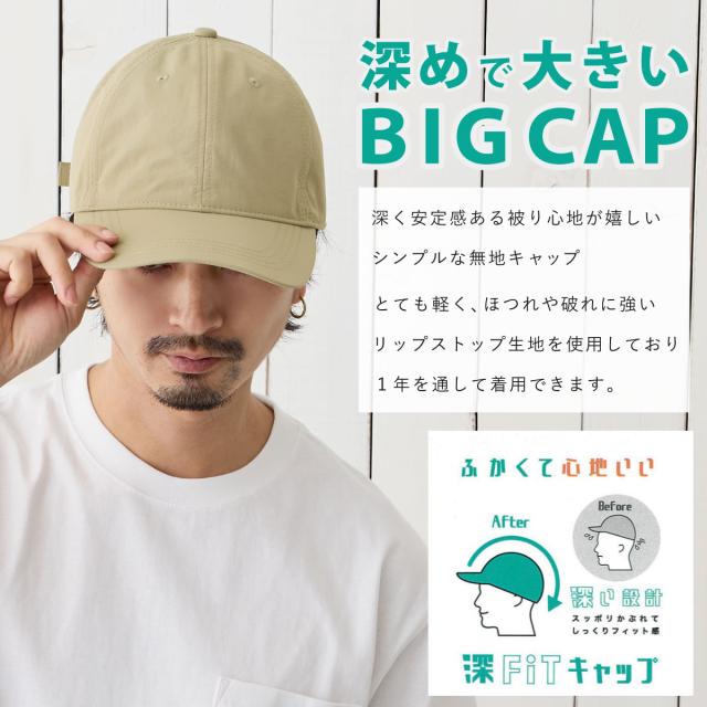 深FIT つば長 BIGキャップ 帽子 大きい 59cm-64cm 軽くて丈夫 リップストップ生地 深く被れる シンプル cap-1130 メール便は送料無料 帽子 レディース 春夏 XL サイズ調節 男女兼用 破れにくい ほつれにくい 耐水 耐久性 軽い 軽量 日焼け防止