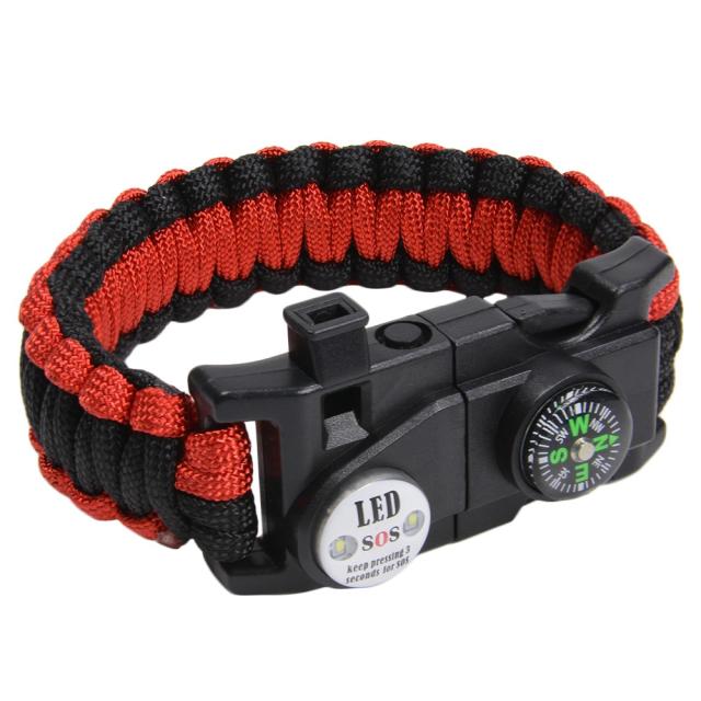 多機能 パラコードブレスレット LEDライト ホイッスル付 [ ブラック&レッド ][rev61134]