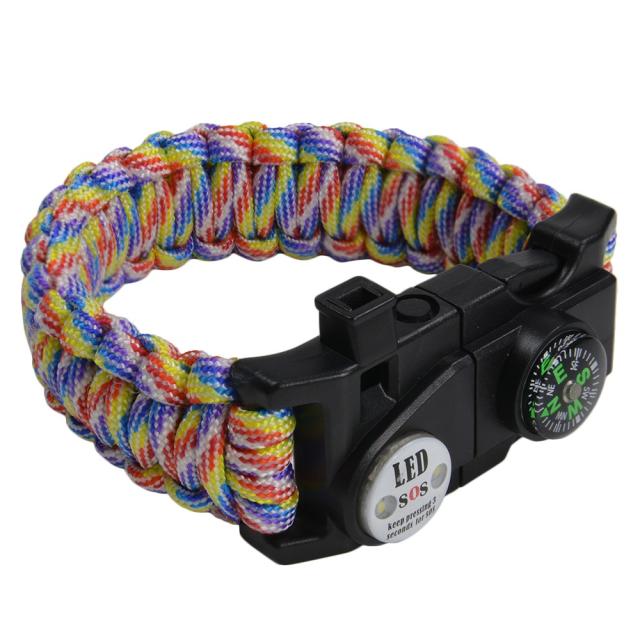 多機能 パラコードブレスレット LEDライト ホイッスル付 [ レインボー ][rev61202]