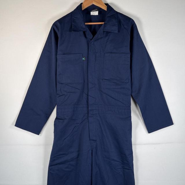 古着 コロッサス Kolossus 長袖つなぎ オールインワン ワーク 作業着 ワンポイントロゴ サイドポケット ダブルファスナー M REG ネイビー